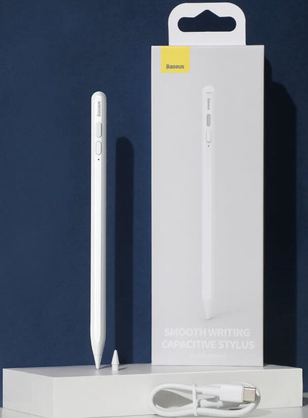 Стилус Baseus Smooth Writing Capacitive Stylus (Active version) (Anti misoperation) White (Containing universal Type-C 3A 0.5m USB wire in white*1; Active tip*1) (SXBC000002)