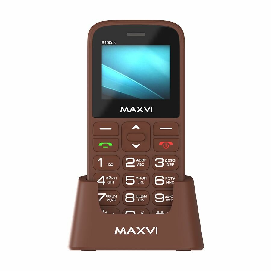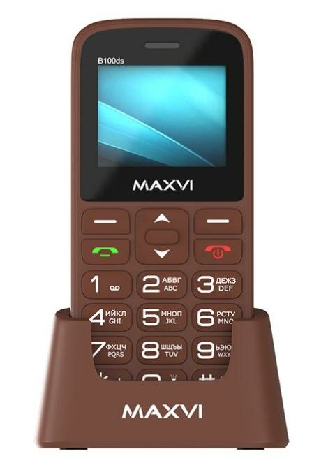 Мобильный телефон Maxvi B100ds brown Док-станция в комплекте 1,77, 128x160 / 1.3 Mpx / 1000 mAh / MicroSD до 32Gb / Dual-Sim / GSM 850/900/1800/1900