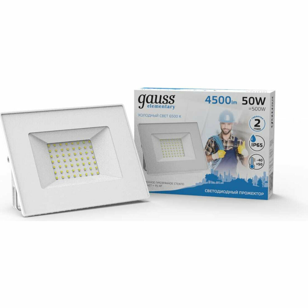 Прожектор Gauss Elementary 50W 4500lm 6500K 200-240V IP65 белый LED