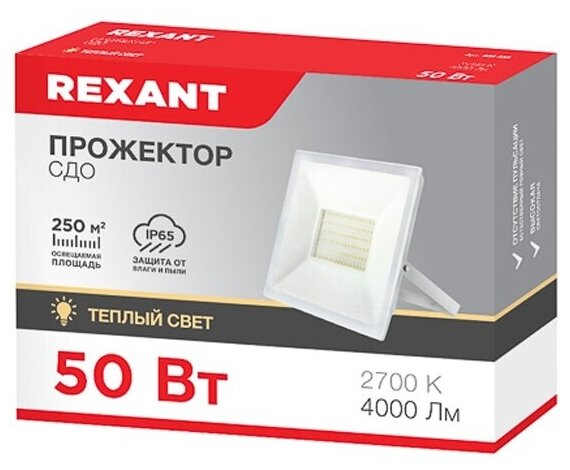 Прожектор светодиодный LED 50 Вт 4000 Лм 2700 K белый корпус REXANT интересное: