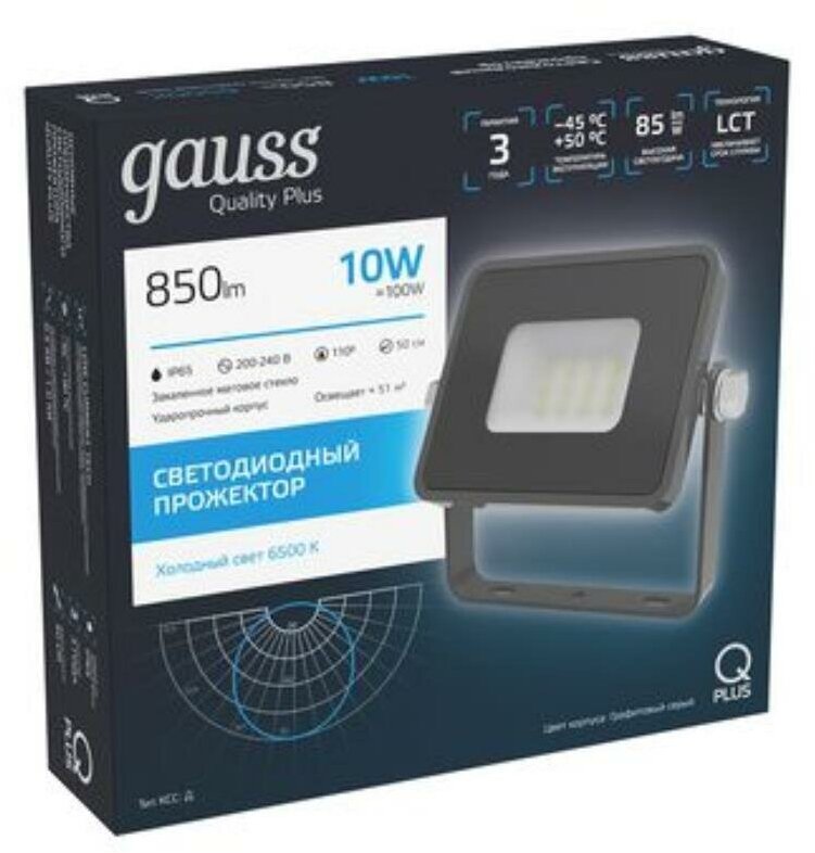 Светодиодный прожектор Gauss Qplus 10 W 850 lm IP65 6500K графитовый серый 1/20 690511310 интересное: