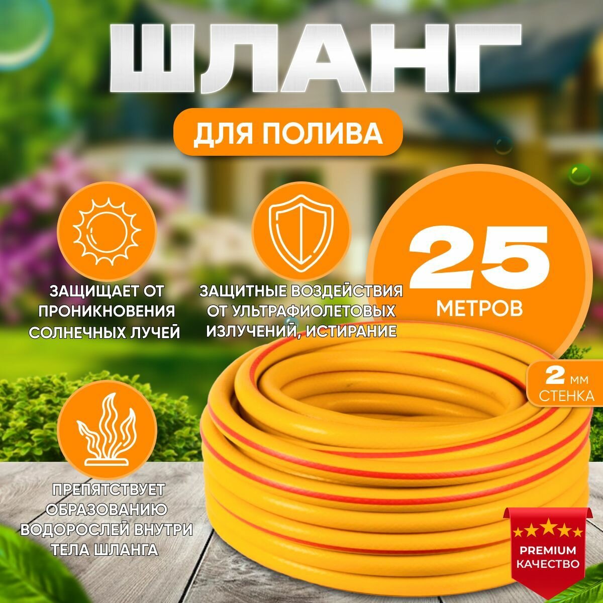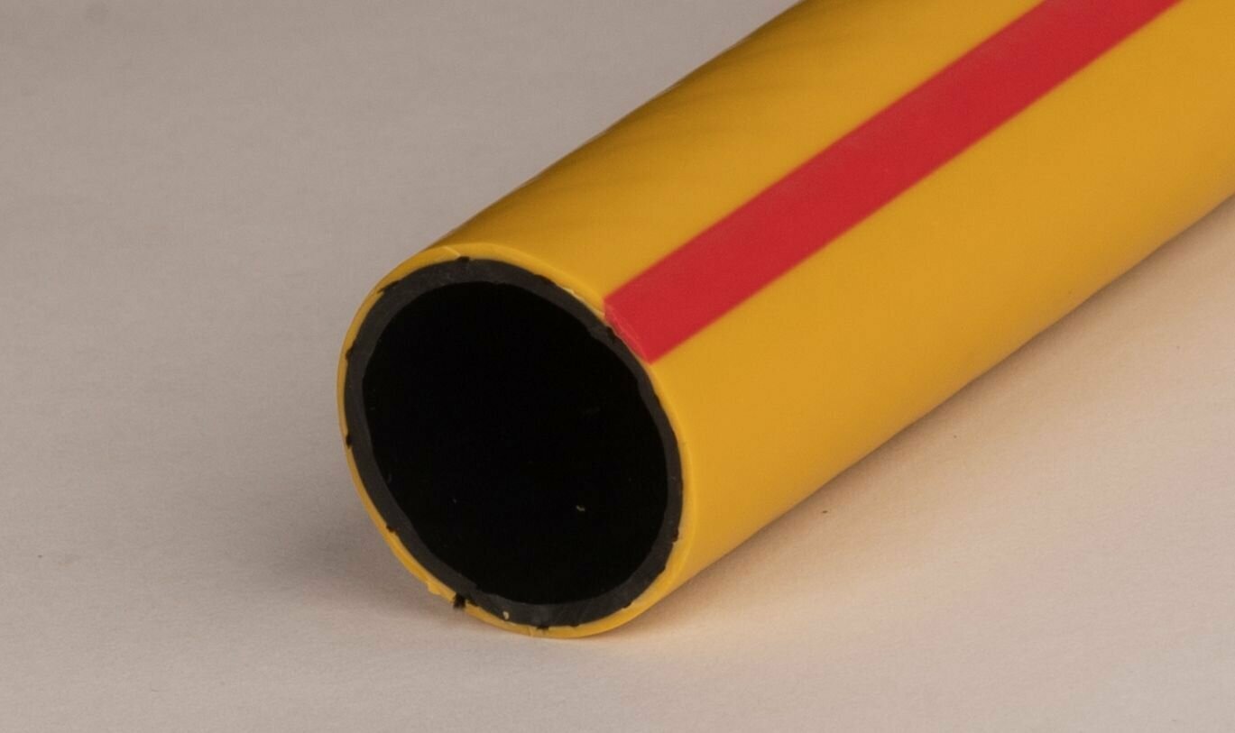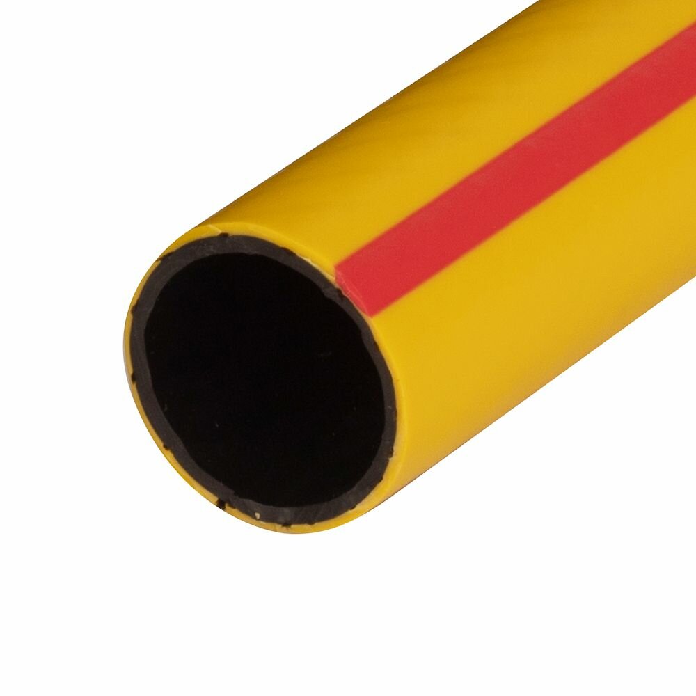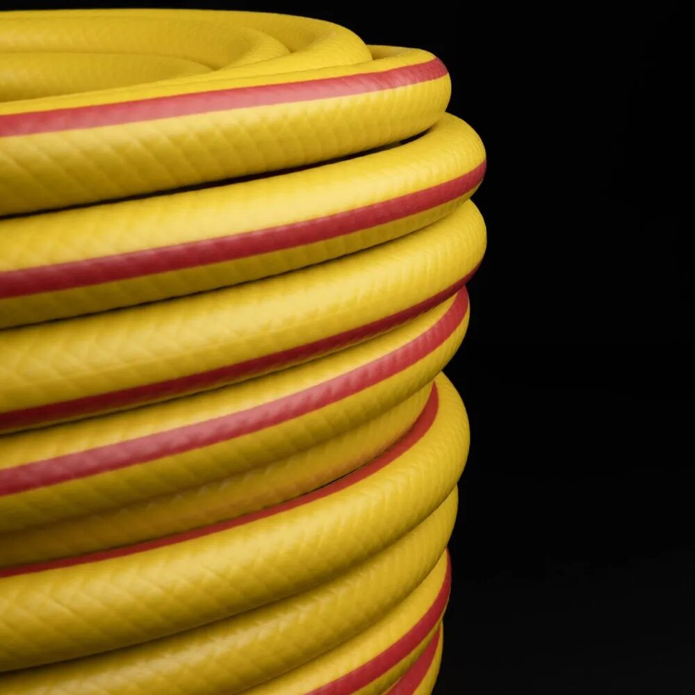 Шланг ПВХ 1/2" (12,5 мм) 25м. армир., 3-сл., толщ. 2мм, желт с красн. полосой Акварель ПолимерШланг (арт. 727121)