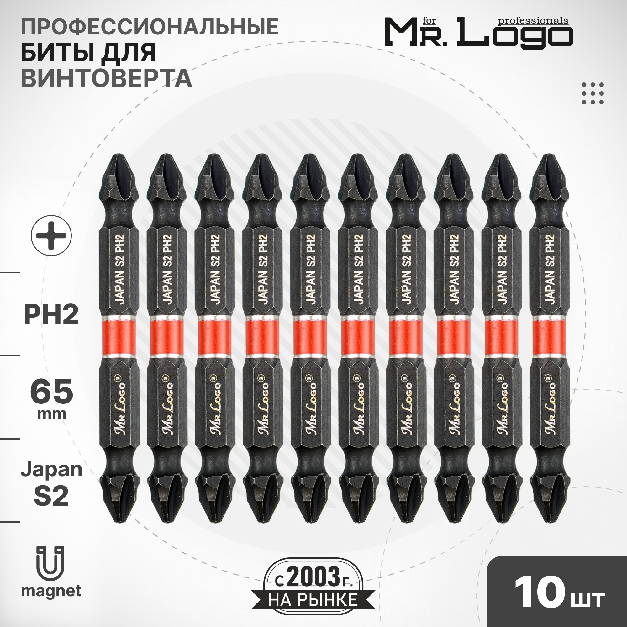 Бита PH2 х 65мм Mr.Logo торсионная для винтоверта намагниченная S2 10шт.