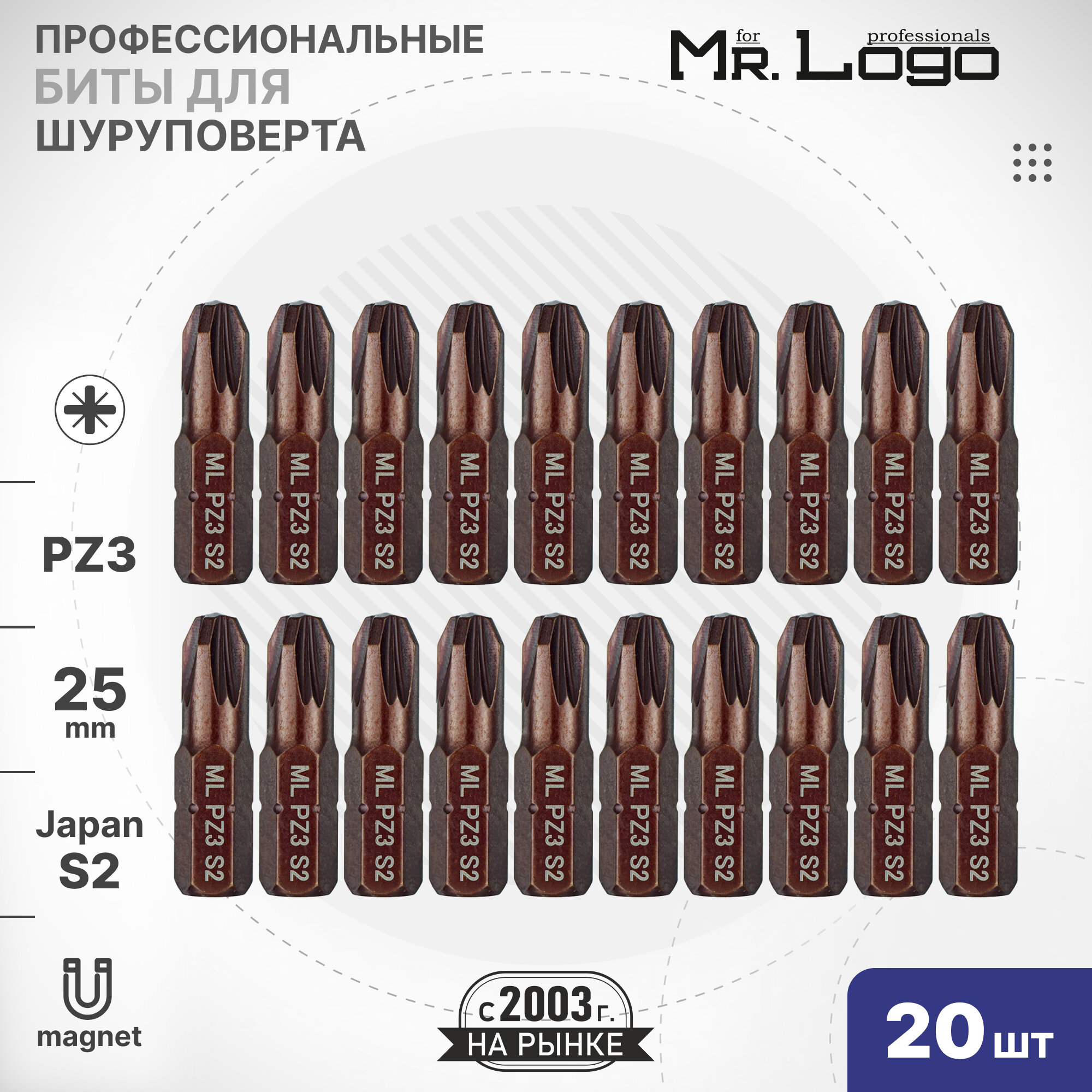 Биты PZ3 х 25мм S2 20шт. MR.LOGO, A102503PZ