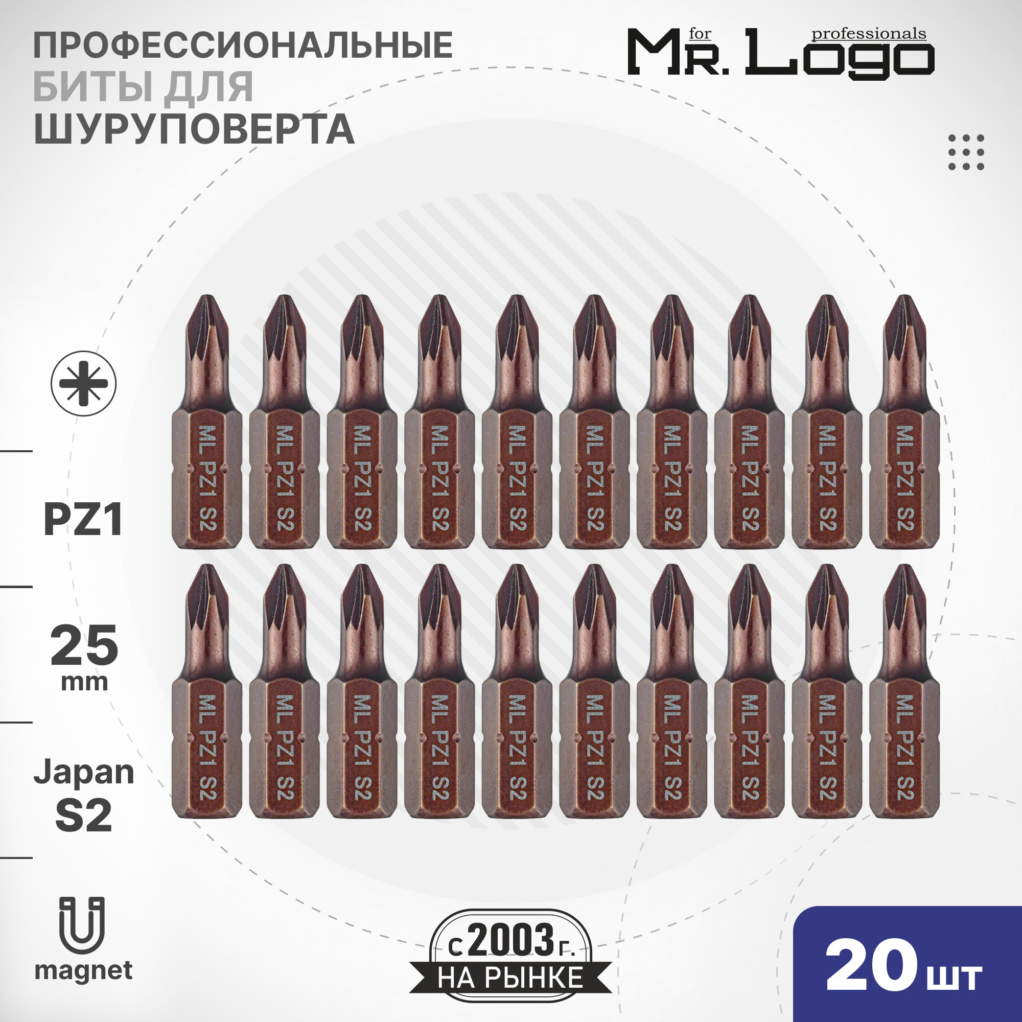 Бита PZ1 x 25мм 20шт. S2 намагниченная Mr.Logo A102501PZ интересное: