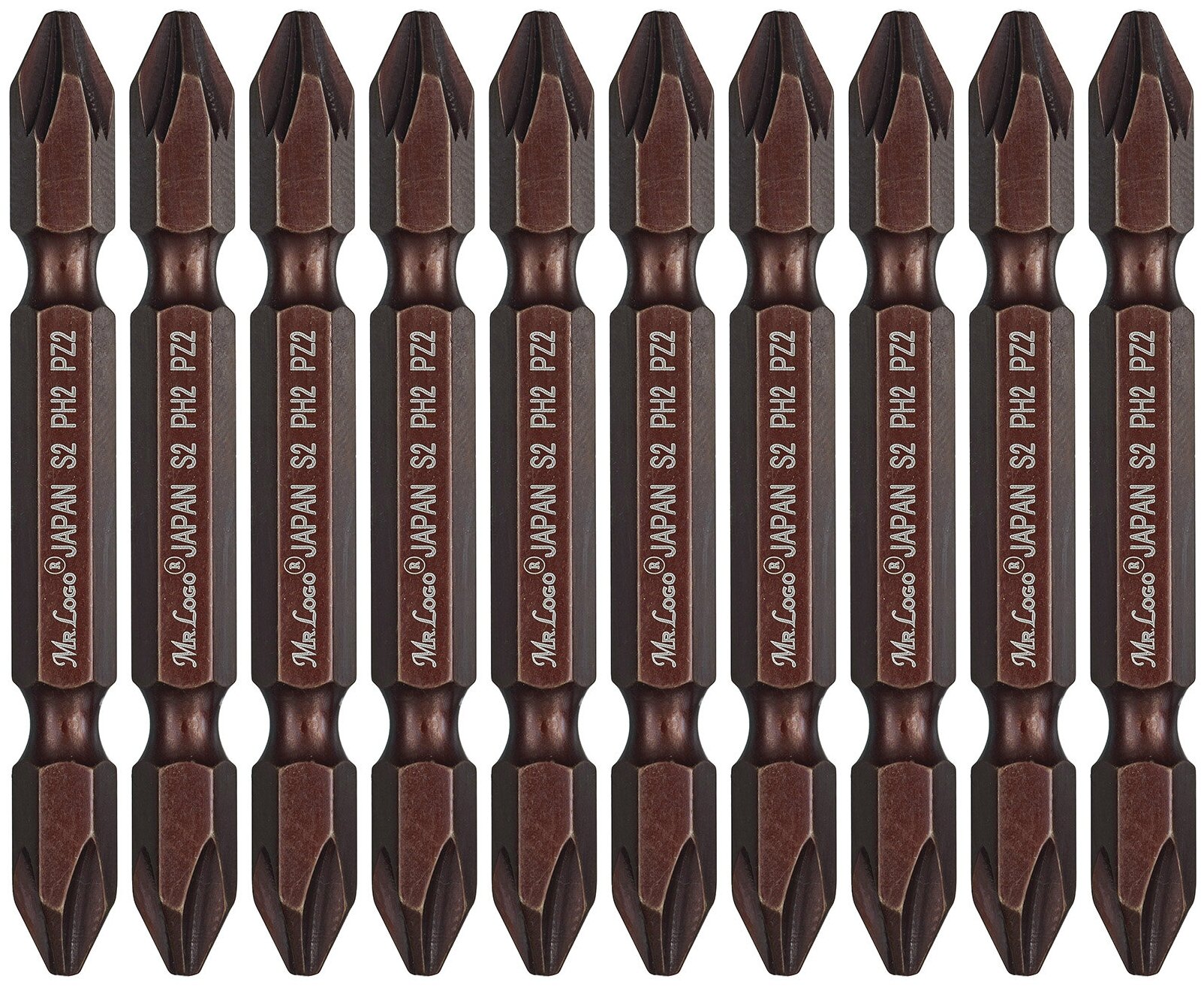 Бита PH2/PZ2 х 65мм Mr.Logo двухсторонняя намагниченная 10 шт Материал - S2.