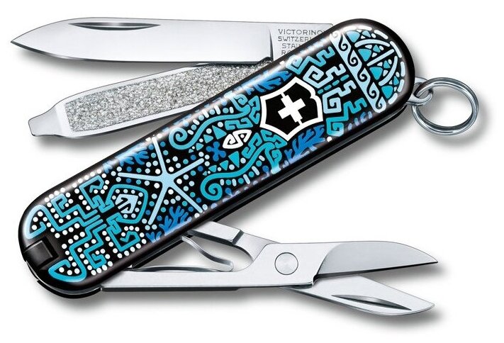 Нож-брелок VICTORINOX Classic 0.6223.L2103 "Tie Dye", 58 мм, 7 функций, лезвие и инструменты из нержавеющей стали, рукоять из пластика Cellidor