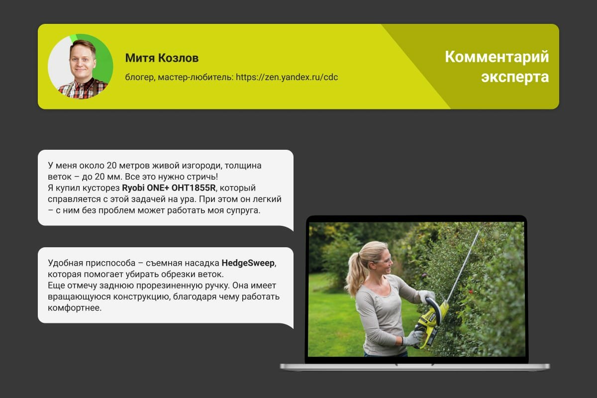 Кусторез аккумуляторный Ryobi OHT1855R ONE+, без АКБ и ЗУ интересное: