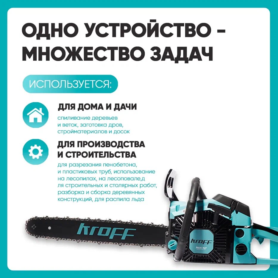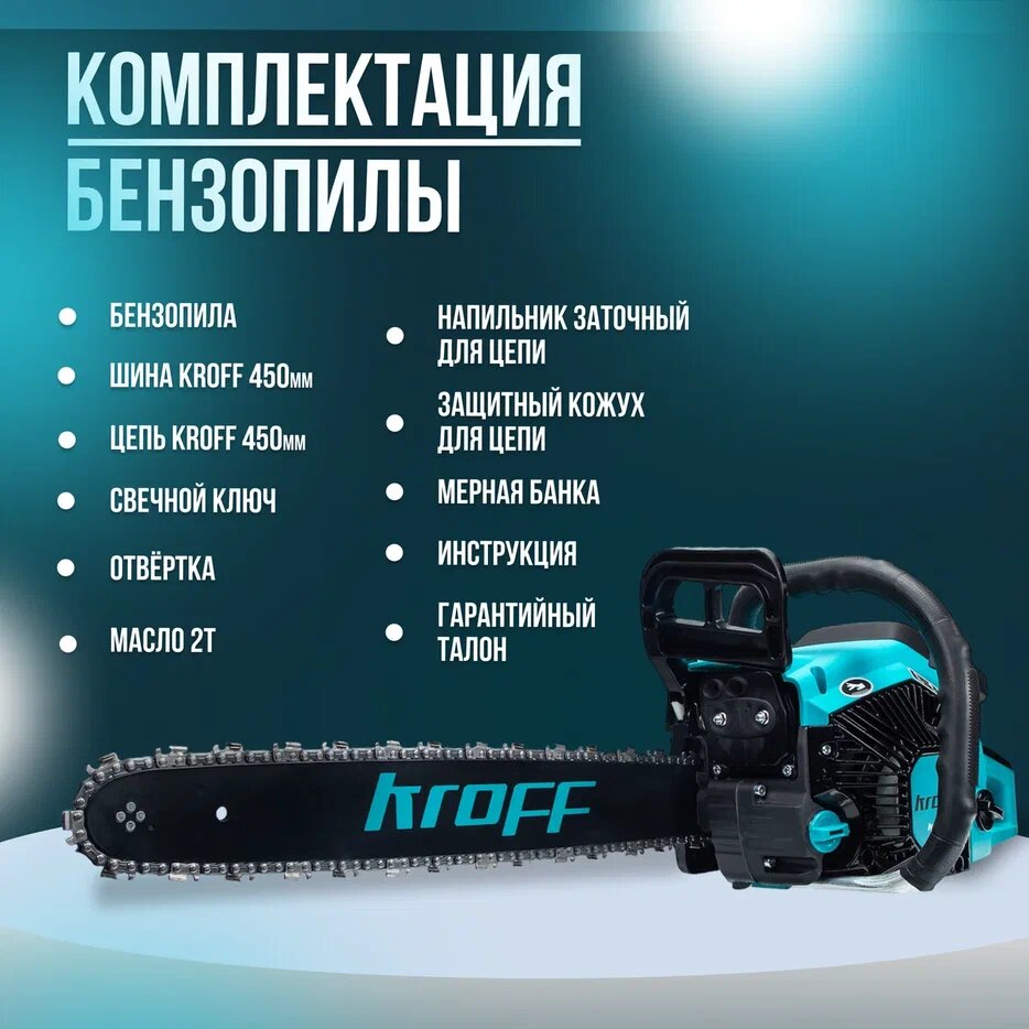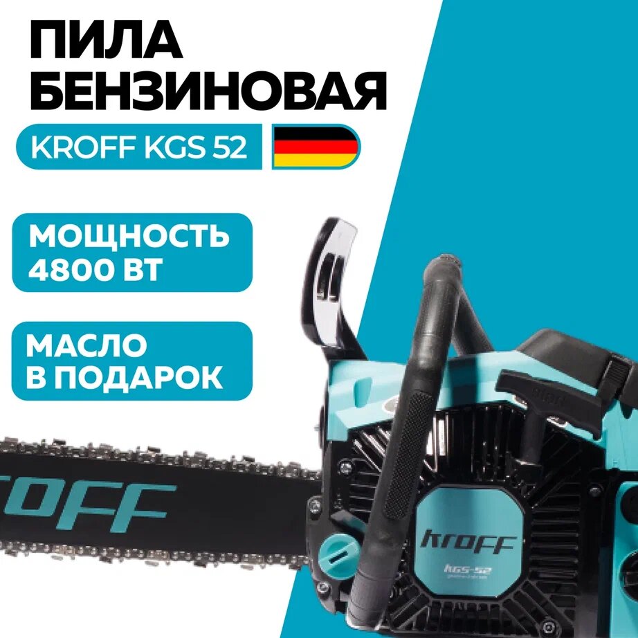 Бензопила/пила цепная бензиновая Kroff KGS-52/4800вт, 45см,72 звена,масло интересное: