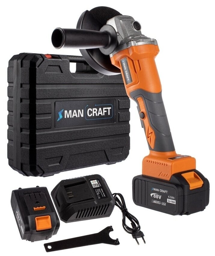 Купить Аккумуляторная угловая шлифовальная машина MANCRAFT 125мм, 88 В, 11000 об/мин, Шлифмашинка, Болгарка бесщеточная в кейсе, Диск 125мм в подарок