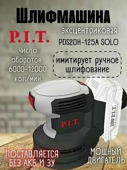 Шлифовальная машина эксцентриковая P.I.T. PDS20H-125A SOLO аккумуляторная (20В, 125мм, Li-Ion, 6000-11000об/мин, коробка)