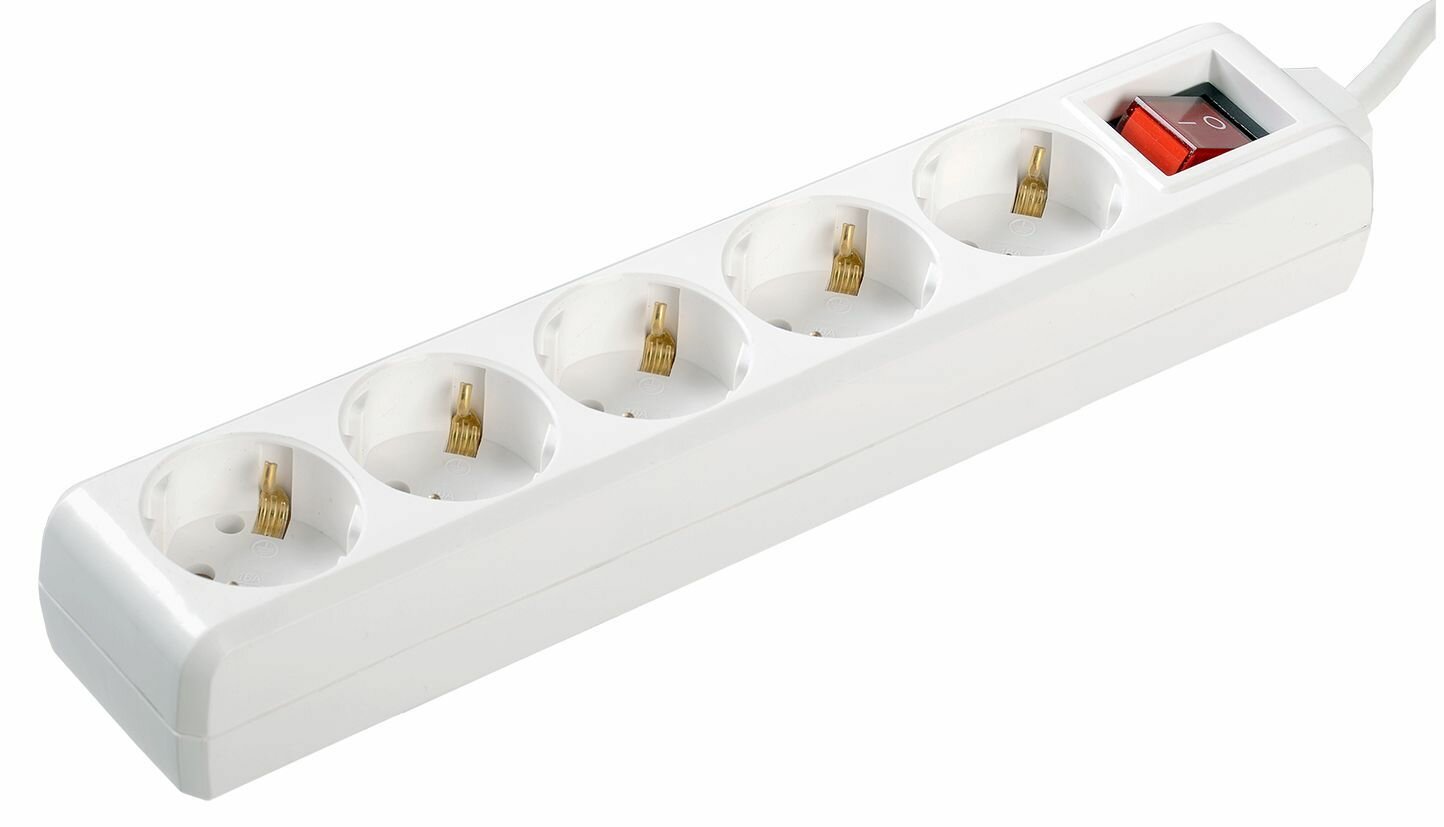 Удлинитель 5гн с 3/К 3м с выкл белый ПВС 3х1мм2 У05К IP20 IEK (1/6)