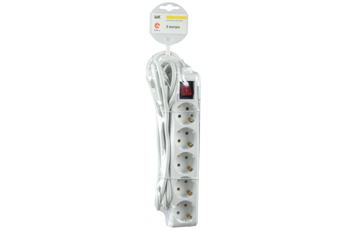 Купить Удлинитель Иэк 5 мест с выключат., з/к. 3м.