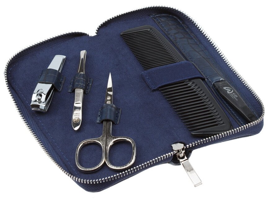 Маникюрный набор GD, 5 предметов. Футляр: искусственная кожа, фактура - крокодил, цвет синий (2150DBCR)