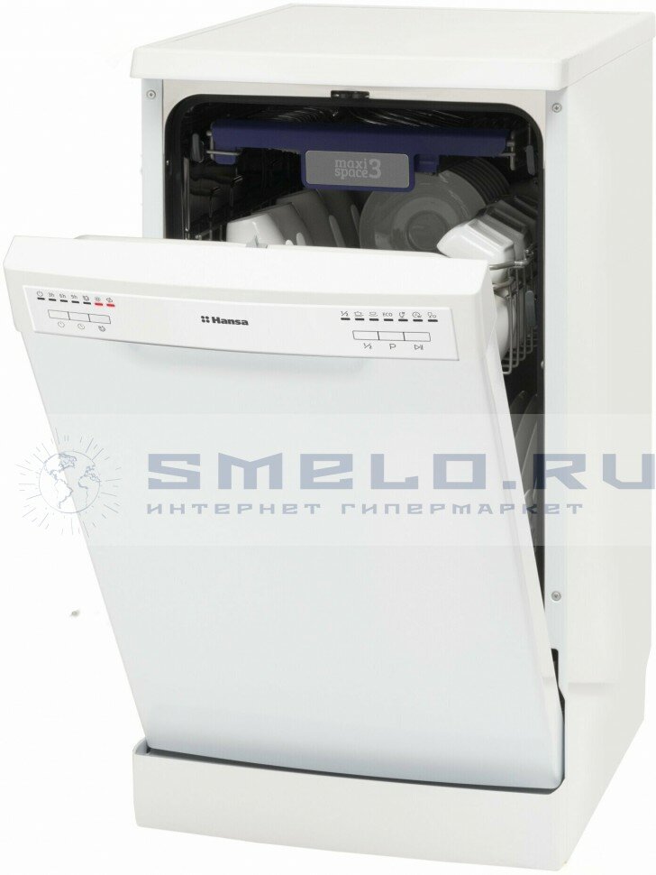 Посудомоечная машина Hansa ZWM456WEH, 45 см, компактная, с защитой от протечек, 6 программ, 3 корзины, режим быстрой мойки и экстра сушка, половинная загрузка, отсрочка старта, отдельностоящая