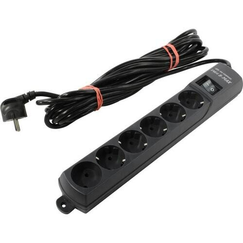 Сетевой фильтр 7.0м черный Pilot S Max (5 евро + 1GP), 15А/3.5кВа, автомат, графит
