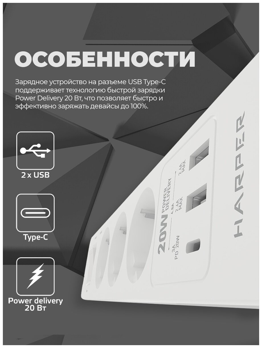 Сетевой фильтр с USB зарядкой HARPER UCH-350 белый PD3.0