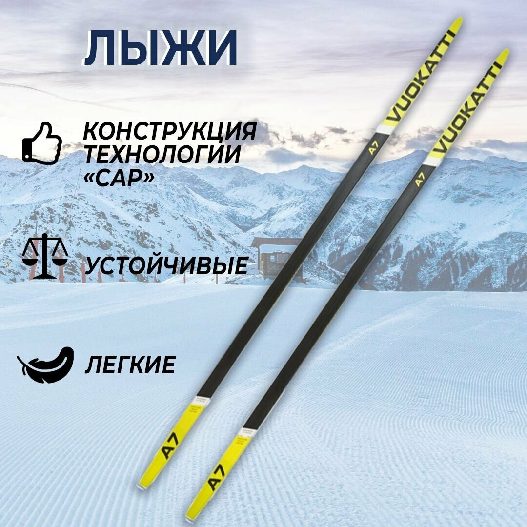 Лыжный комплект VUOKATTI / Беговые лыжи 195 см с креплением 75 мм Step цвет Black/Yellow