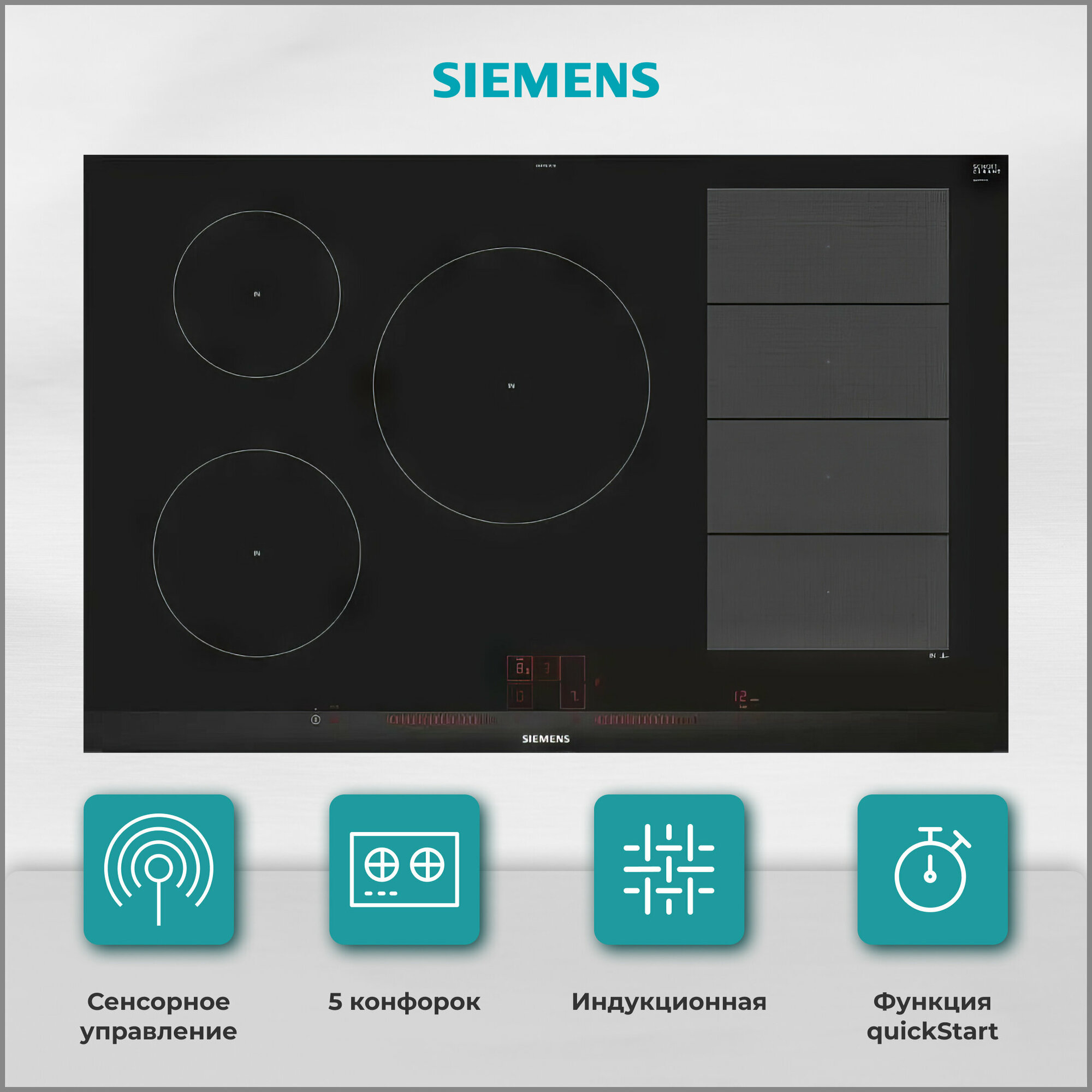 Индукционная варочная панель Siemens EX875LVC1E, цвет панели черный, цвет рамки серебристый интересное: