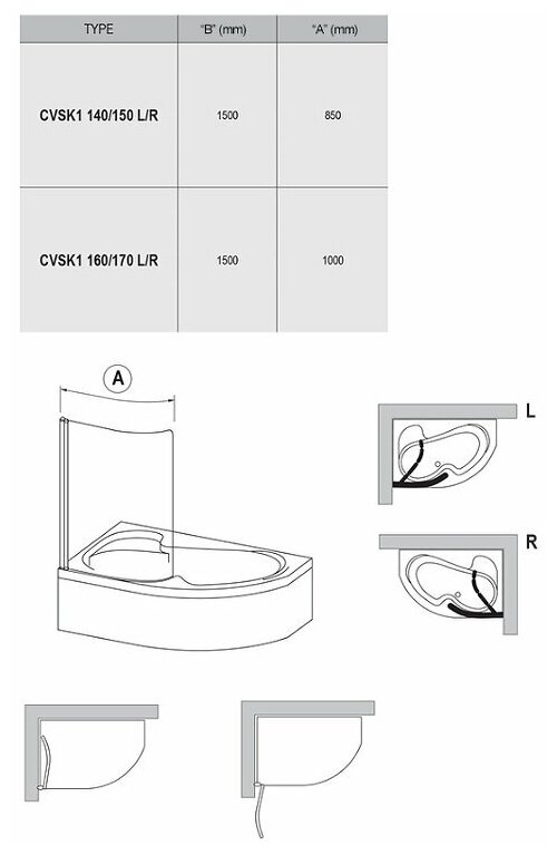 Шторка для ванны Ravak CVSK1 Rosa 140/150 7QRM0C00Y1 R