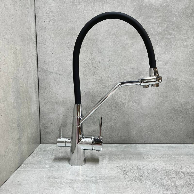 Смеситель Haiba HB76855-7 для кухни с гибким изливом и подключением фильтра, черный
