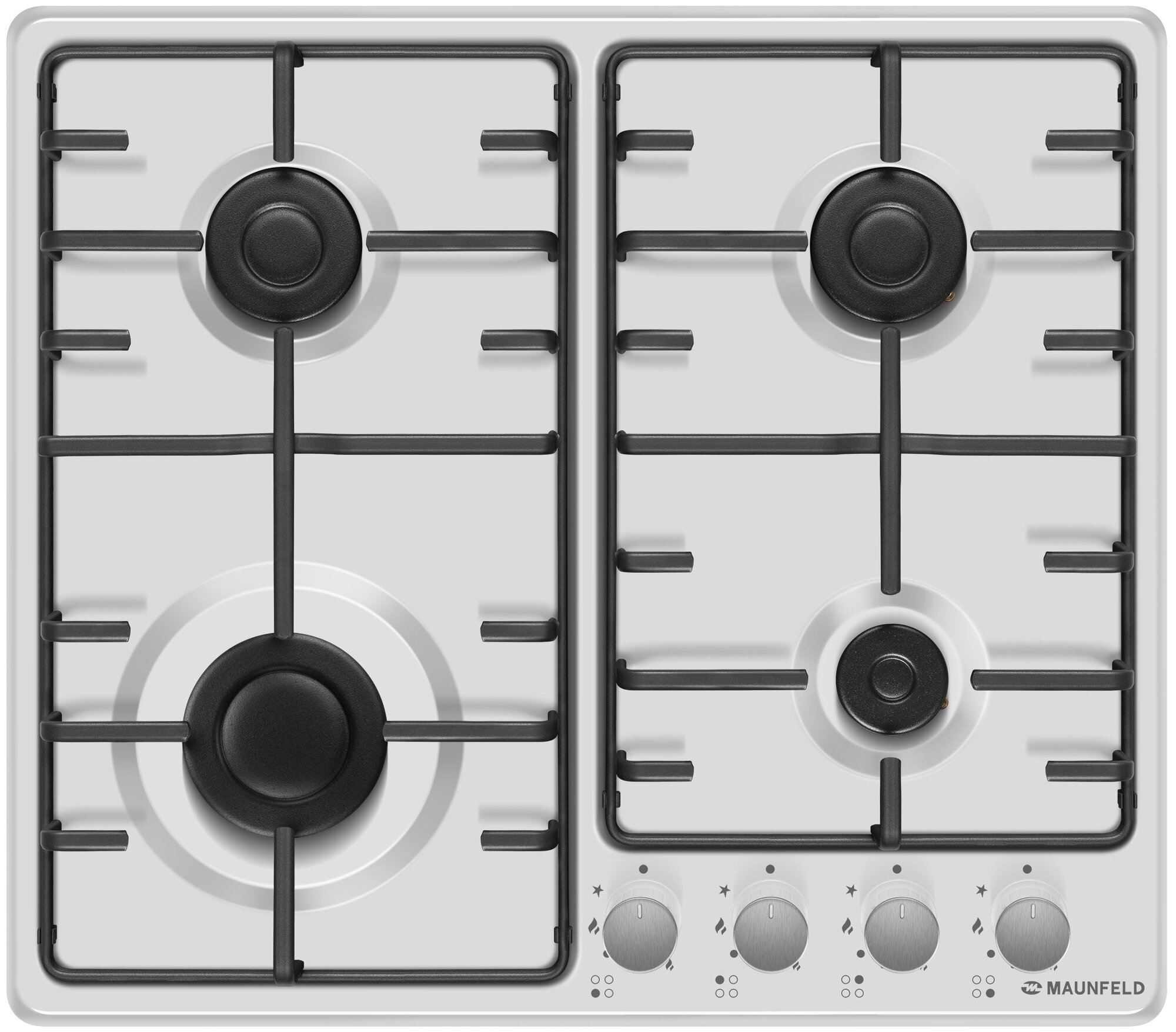 Газовая варочная панель MAUNFELD EGHE.64.3STS-EW/G, газ-контроль, автоматический электроподжиг