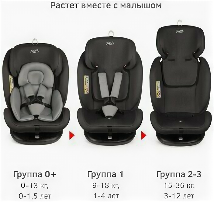 | Особенности | вес: не более 7.2 кг; замок ремней с защитой от неправильного использования; система плавного вращения кресла на базе на 360°; соответствует требованиям Правил ЕЭК ООН №44-04 и ТР ТС 018/2011 |