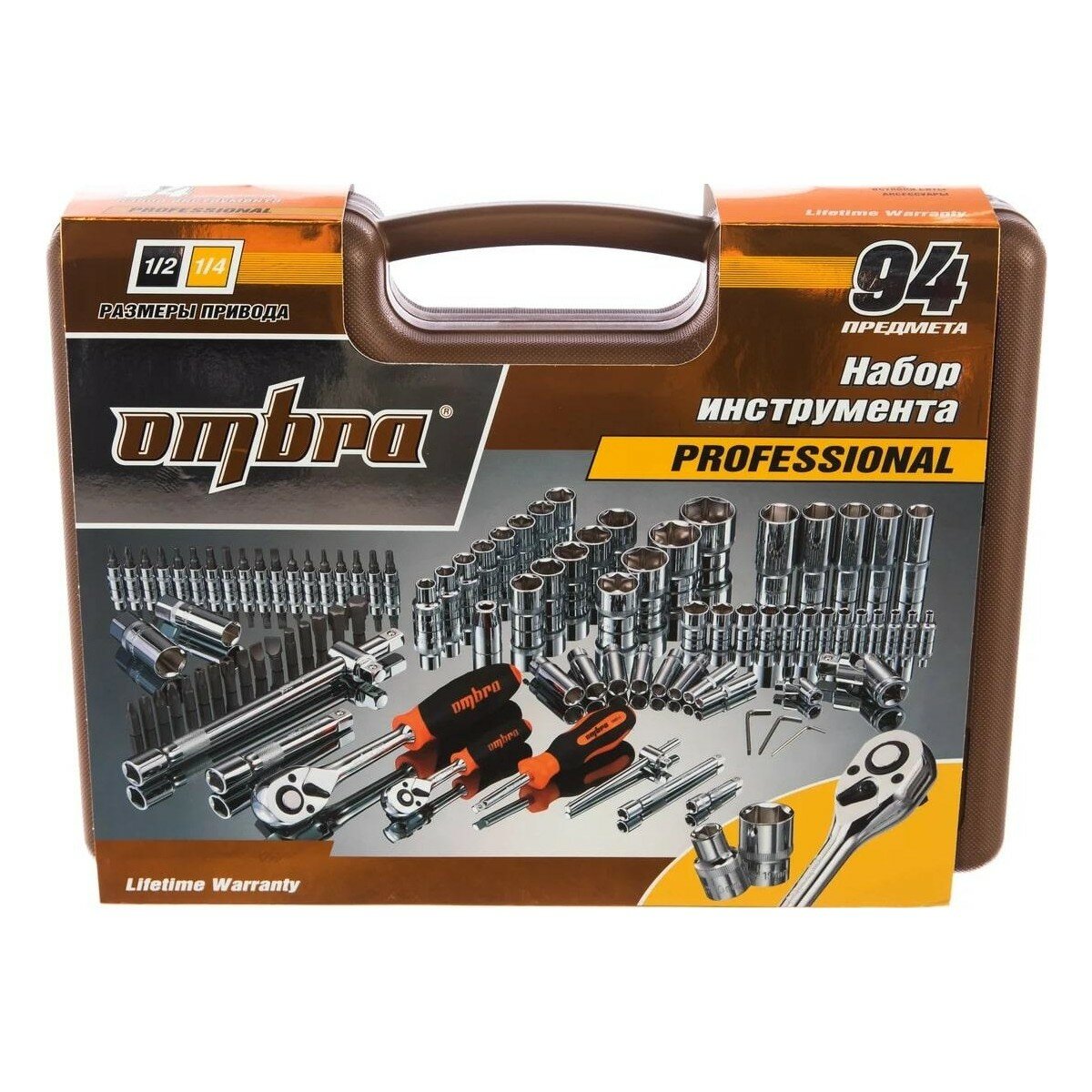 Набор инструмента универсальный 1/4", 1/2"DR с головками торцевыми 12-гранными 1/2"DR, 94 предмета Ombra