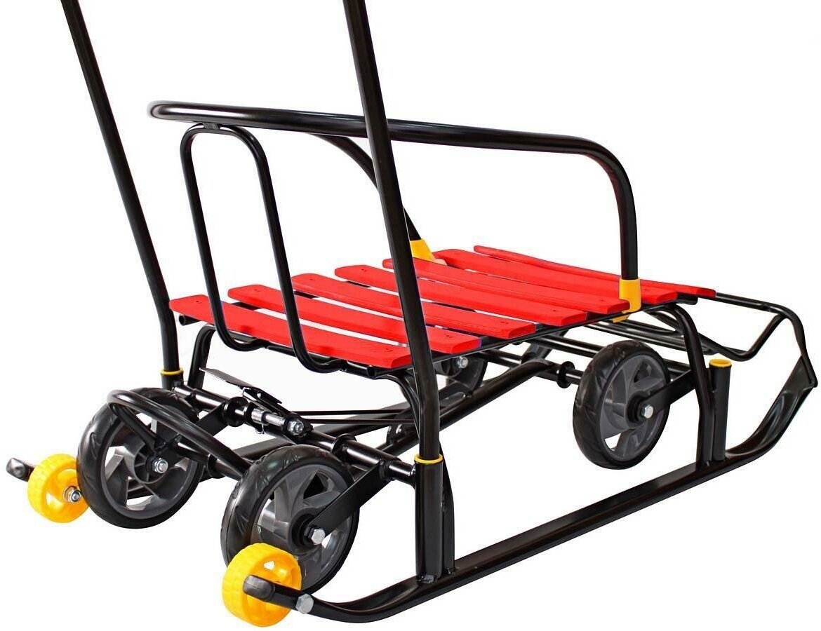Санки детские с выдвижными колесами, спинкой и ручкой GALAXY "Мишутка-1" Универсал (черный-красный)