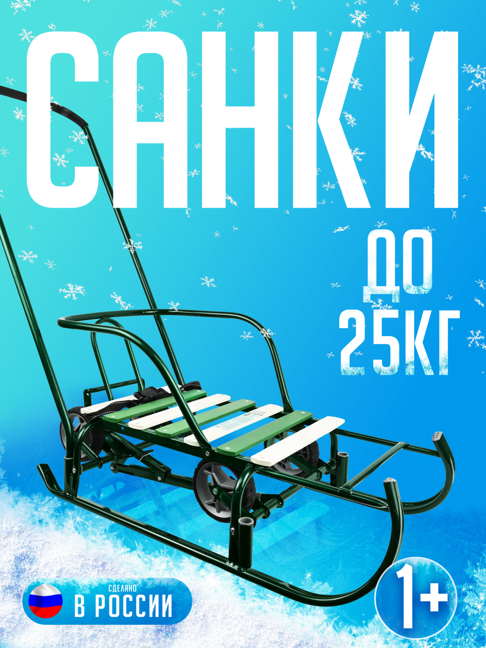 | Плюсы: | Высокие колеса, высокая проходимость что на полозьях, что на колесах. Устойчивые санки. |