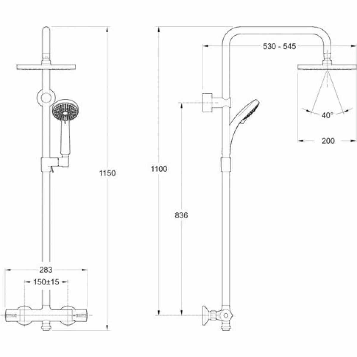 | Дополнительная информация | высота стойки для душа: 1150 мм; диаметр душевой лейки: 90 мм; длина верхнего душа: 200 мм; ширина верхнего душа: 200 мм |