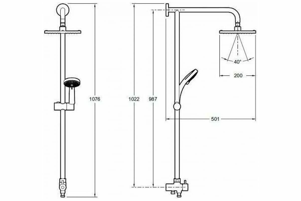 | Дополнительная информация | высота стойки для душа: 976 мм; диаметр душевой лейки: 90 мм; длина верхнего душа: 200 мм; ширина верхнего душа: 200 мм; вес 3.2 кг |