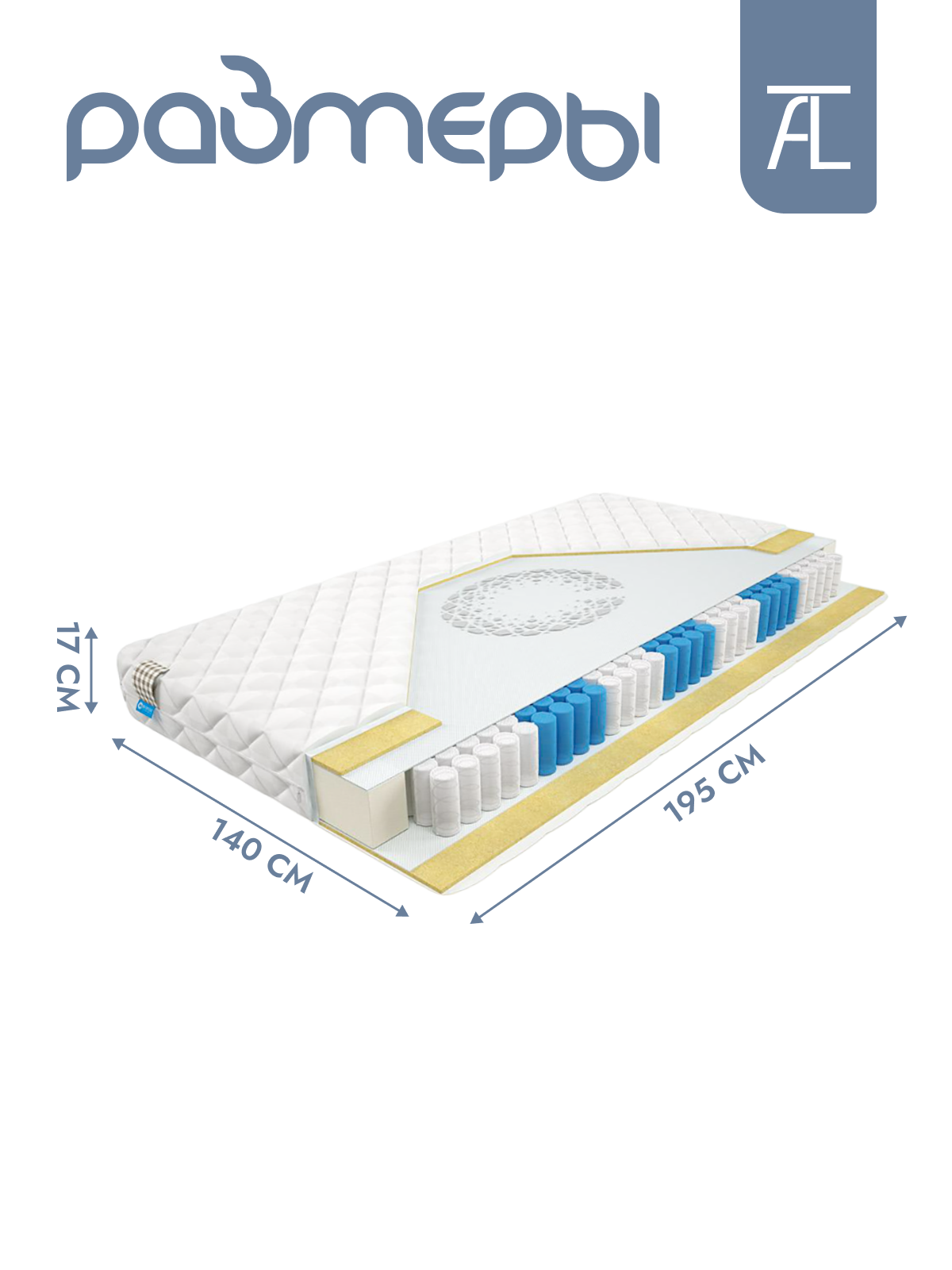 | Дополнительная информация | состав: съемный чехол «white plaid», латексированный сизаль h - 1 см, термовойлок (опция - BioCrystal 50 гр.), SilverSpringPocket 7 zone 580 пр/сп.м h - 14 см, термовойлок, латексированный сизаль h - 1 см, укрепляющий короб, внутренний чехол |
