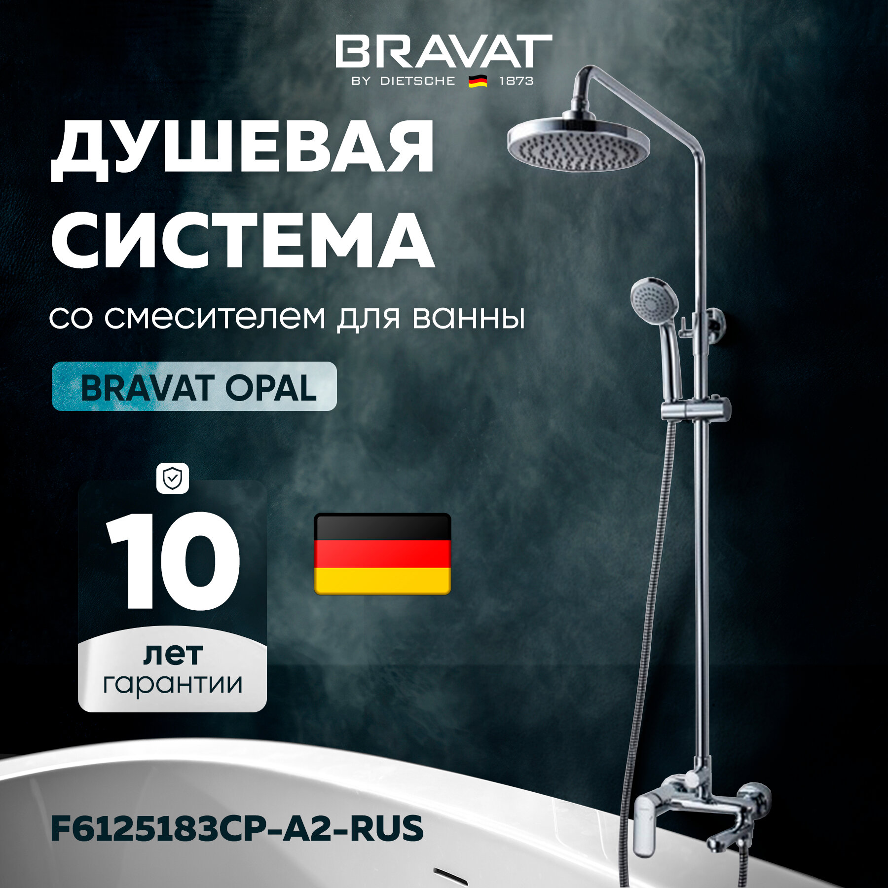Душевая стойка BRAVAT со смесителем для ванны Opal R F6125183CP-A2-RUS Хром