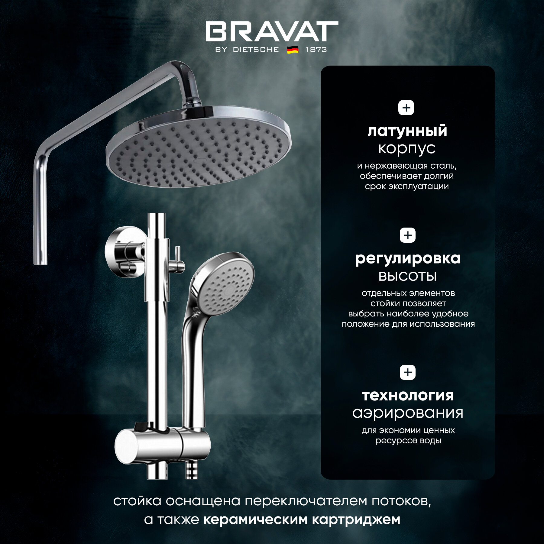| Материал душевой стойки | латунь |
