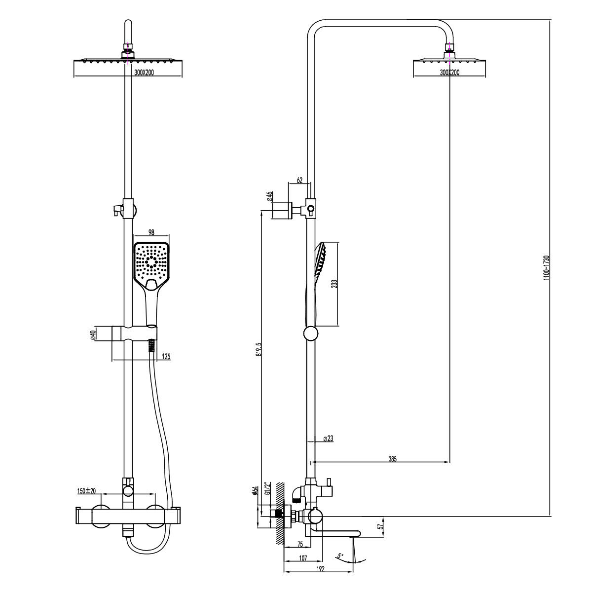 | Дополнительная информация | высота стойки для душа: 1380 мм; диаметр душевой лейки: 84 мм; длина верхнего душа: 297 мм; ширина верхнего душа: 210 мм |