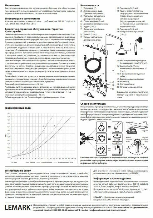 | Комплектация | верхний душ / лейка / шланг / держатель для лейки / душевая штанга / Смеситель |