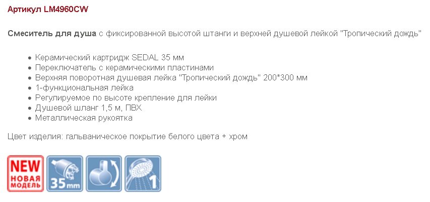 Ниже Вы можете прочитать отзывы на Душевая система LEMARK Melange LM4960CW, ознакомится с подробными характеристиками, посмотреть интересные обзоры и фотографии на Душевая система LEMARK Melange LM4960CW.