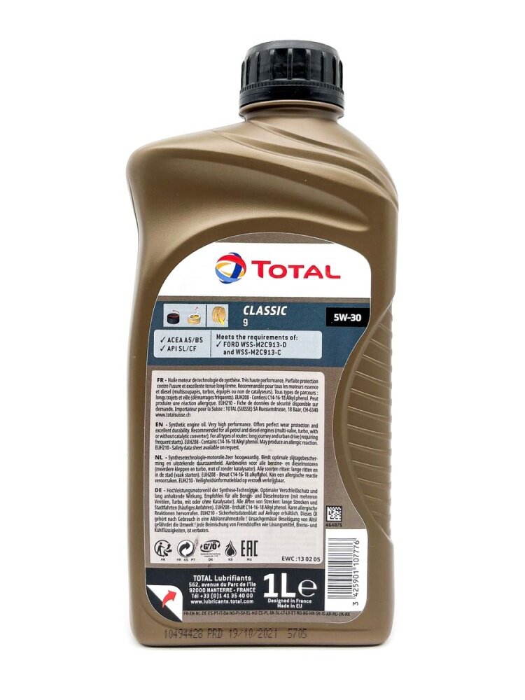 TOTALENERGIES 213839 Масо 5L Total Classic 9 5W30 ACEA A5/B5 SL/CF MAZDA FORD TOYOTA NISSAN VOLVO KIA Meet Ford WSS-M2C