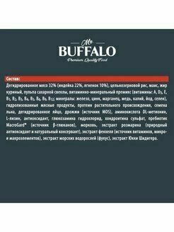 | Состав | дегидрированное мясо 32% (индейка 22%, ягненок 10%), цельнозерновой рис, маис, жир куриный, пульпа сахарной свеклы, витаминно-минеральный премикс (витамины: А, D3, E, B1, В2, В3, B4, B5, B6, B9, B12; минералы: железо, цинк, марганец, медь, калий, йод, селен), гидролизованные мясные продукты, протеин растительного происхождения, семена льна, дегидрированное яйцо, дрожжи (источник MOS), аминокислота DL-метионин, L-лизин, антиоксидант, глюкозамина гидрохлорид, хондроитина сульфат, пребиотик MacroGard® (источник β-глюканов), морковь, экстракт розмарина (природный антиоксидант и натуральный консервант), экстракт фенхеля (источник витаминов, микро- и макроэлементов), экстракт морских водорослей (фукус), экстракт Юкки Шидигера |
