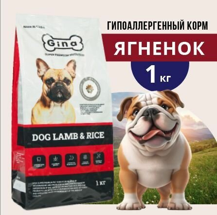 Корм сухой для собак гипоаллергенный Gina с ягненком и рисом, 1 кг