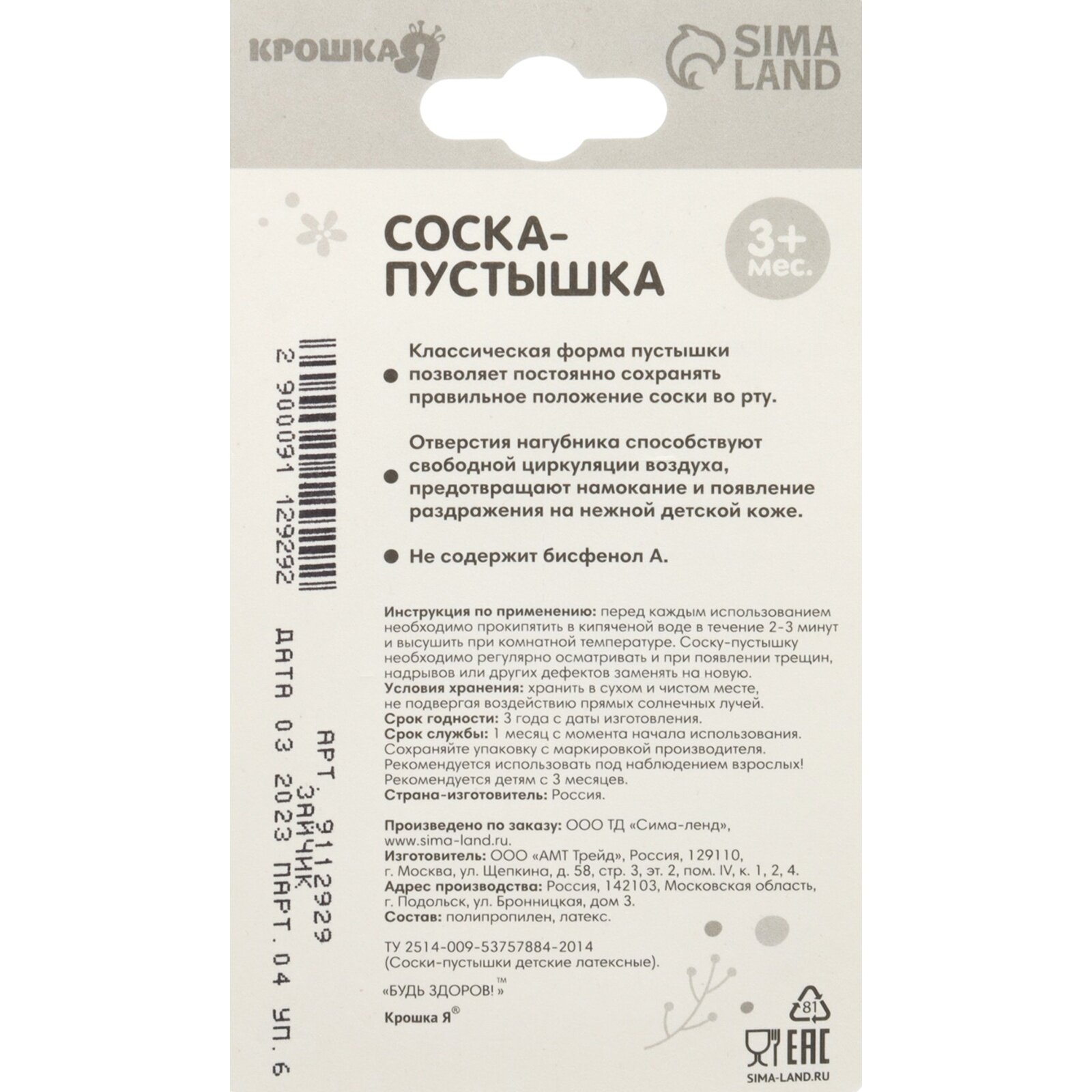 | Тип | латексная пустышка |