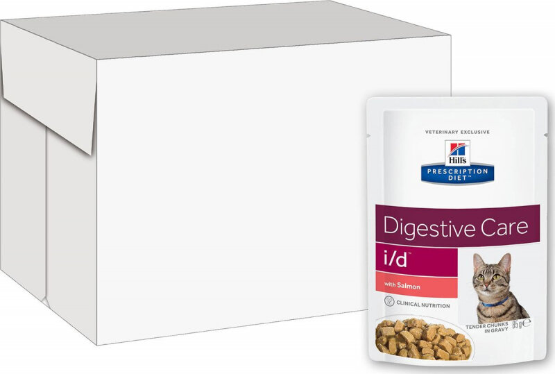 Hills Prescription Diet i/d диетический влажный корм для кошек при заболеваниях ЖКТ с лососем, в паучах - 85 г x 12 шт