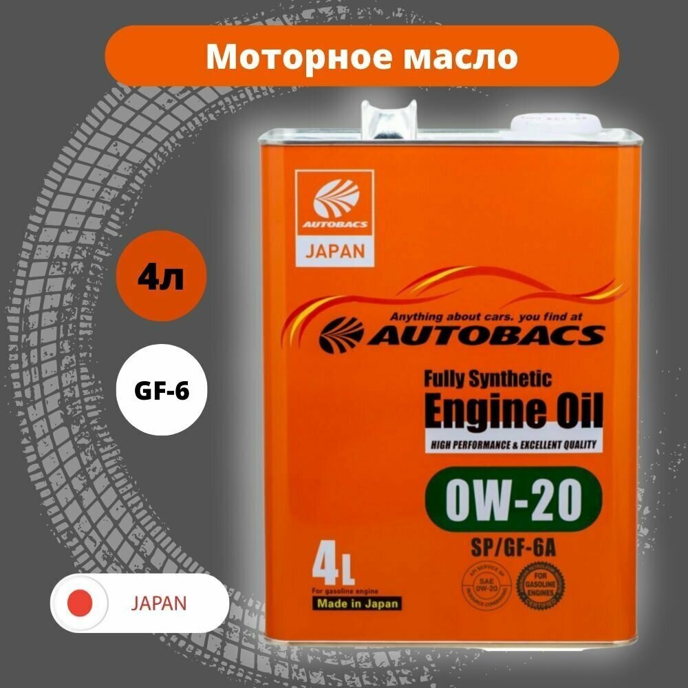 AUTOBACS A00032230 SAE 0W20 4L 0W-20 ENGINE OIL API SP ILSAC GF-6A FULLY SYNTHETIC моторное масло синтетическое