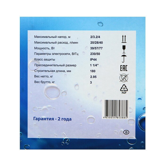 | Дополнительная информация | монтажная длина 180 мм; тип ротора: "мокрый" |