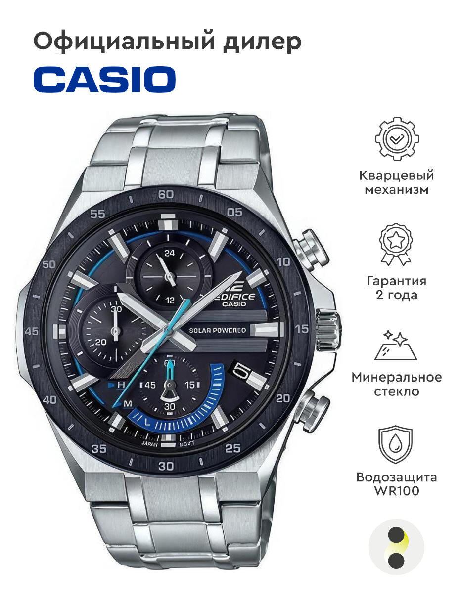 Японские кварцевые часы с солнечной подзарядкой Casio Edifice EQS-920DB-1B на стальном браслете, с водозащитой 10 бар и международной гарантией от производителя