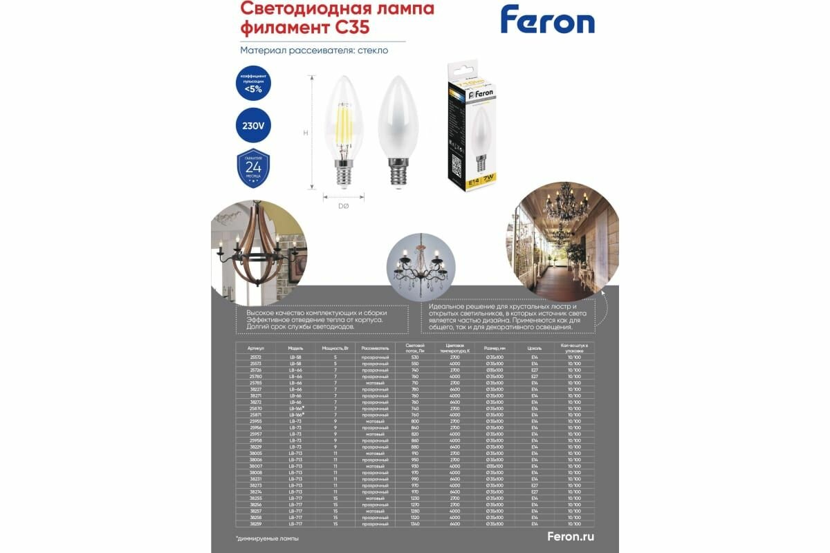Светодиодная лампа FERON 9W 230V E14 4000K матовая, LB-73 25957 интересное: