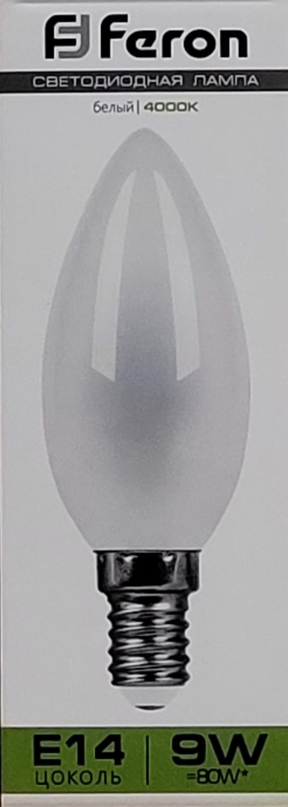 Лампа светодиодная Feron E14 9W 4000K Свеча Матовая LB-73 25957