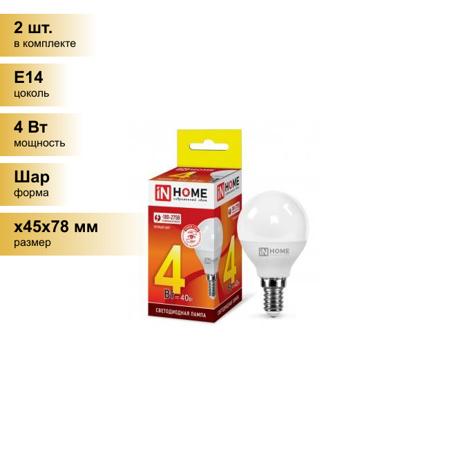 Лампа светодиодная IN HOME LED-ШАР-VC, 4 Вт, 230 В, Е14, 3000 К, 380 Лм