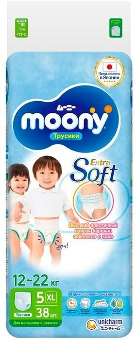 Подгузники трусики детские Moony Extra Soft универсальные 5 XL 12-22 кг, 38 шт
